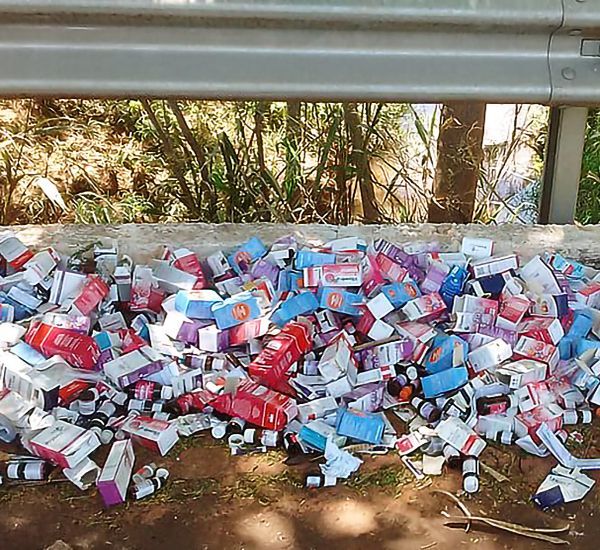 Remédios jogados em estrada poderiam ter causado poluição em córrego