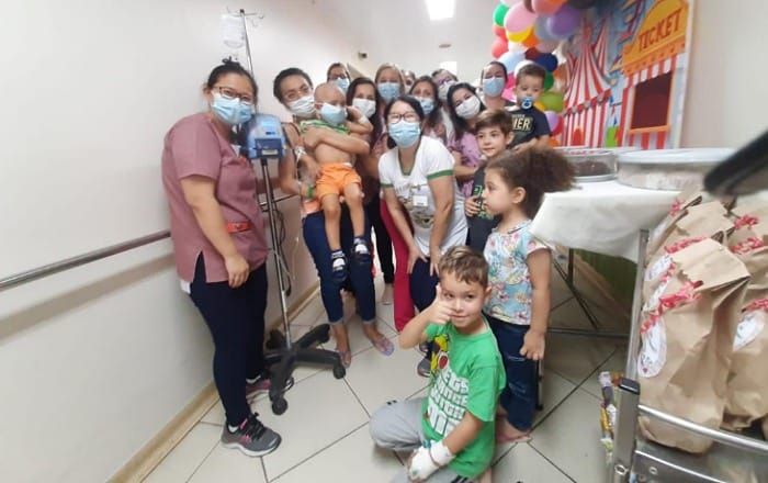 Festividade envolveu médicos e equipe de enfermagem e agradou 18 pacientes internados, dentre os quais um bebê de 22 meses, de Araçatuba, em tratamento oncológico