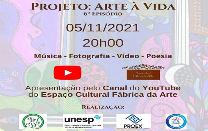 Última live do Projeto Arte á Vida será nesta sexta-feira (05), a partir das 20h, pelo canal do espaço cultural Fábrica da Arte, no Youtube
