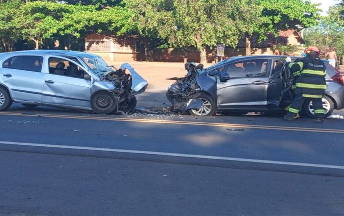 Gol e Honda Fit colidiram de frente; duas pessoas foram socorridas com ferimentos