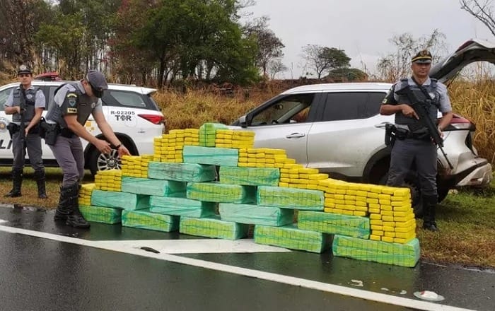 MOTORISTA ABANDONA CARRO LOTADO DE DROGA E FOGE POR DENTRO DE CANAVIAL