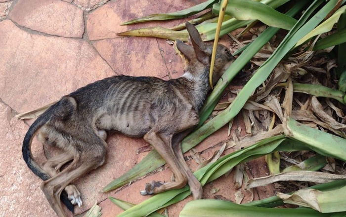 Cachorro morto com as vísceras expostas, servia de alimento para os demais animais