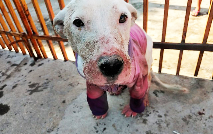 Animal foi encontrado em residência com machucados pelo corpo e feridas por sarna