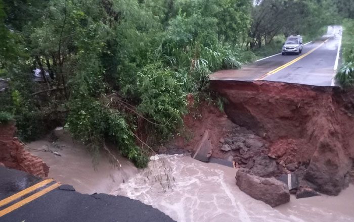 CHUVA PROVOCA ROMPIMENTO DE TUBULAÇÃO E DESTRÓI RODOVIA