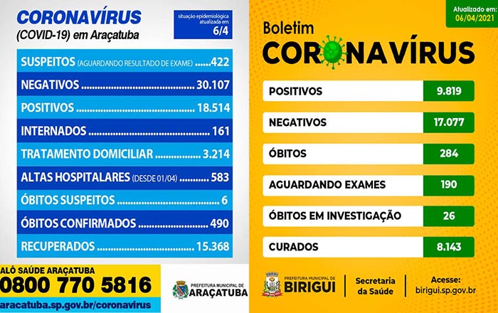Araçatuba e Birigui têm registros galopantes de vítimas do novo coronavírus, indicam boletins