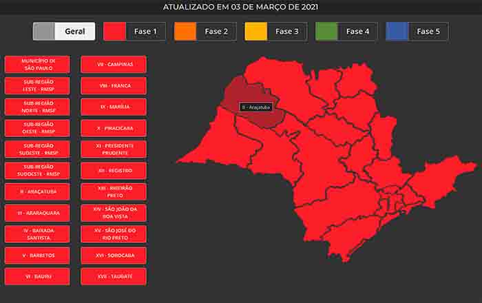 ESTADO DE SÃO PAULO INTEIRO VAI À FASE VERMELHA CONTRA A COVID-19