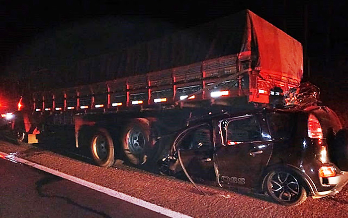 Acidente aconteceu na noite desta segunda-feira (03); caminhão saiu de posto pouco antes de colisão