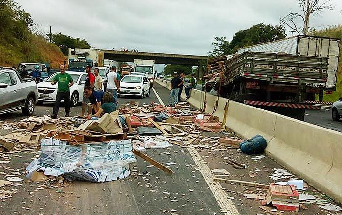 Caminhoneiro fica ferido ao ser arremessado sobre carga de porcelanato