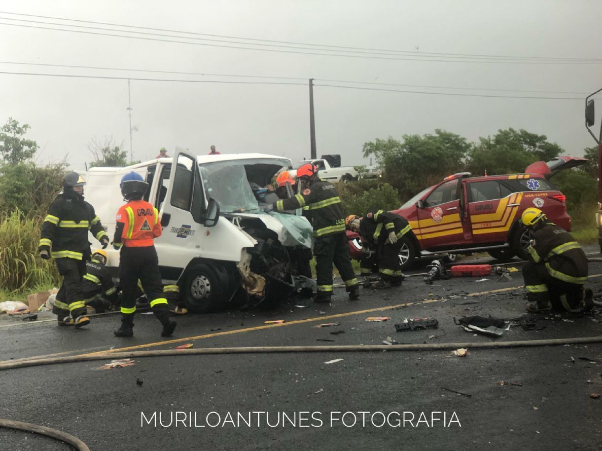 Van e HB20 bateram de frente em trecho de rodovia; chovia no momento em que ocorreu acidente