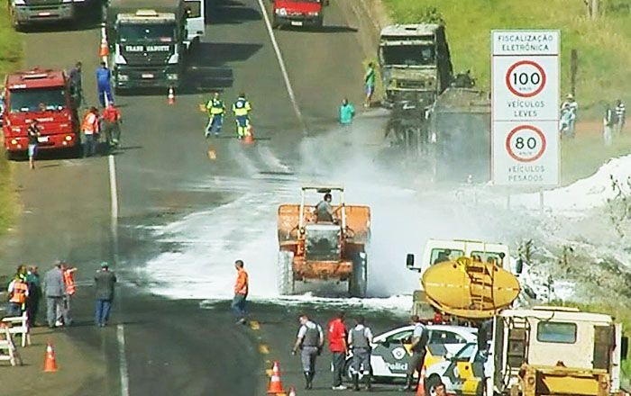 VEJA VÍDEO: Incêndio provoca acidente com 4 carros e 2 caminhões